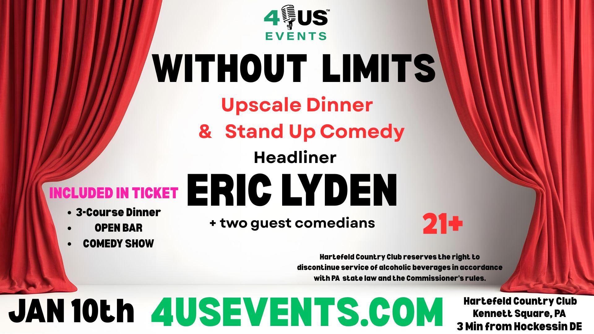 Hartefeld Country Club 1 Hartefeld Dr, Avondale, PA, United StatesWITHOUT LIMITS: Dinner & Stand-Up Comedy Night The Event You’ve Been Waiting For! Warning: You may laugh too hard! The holidays are stressful — this is your chance to finally...